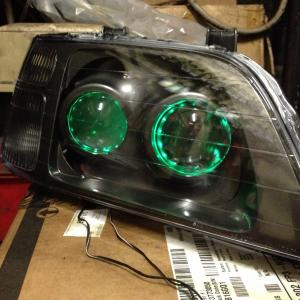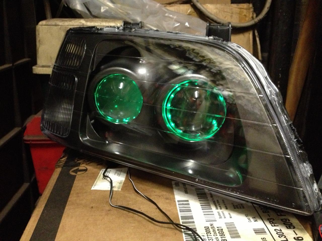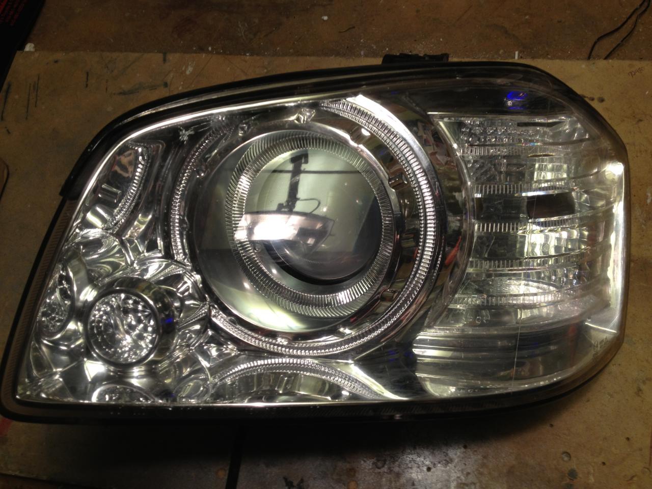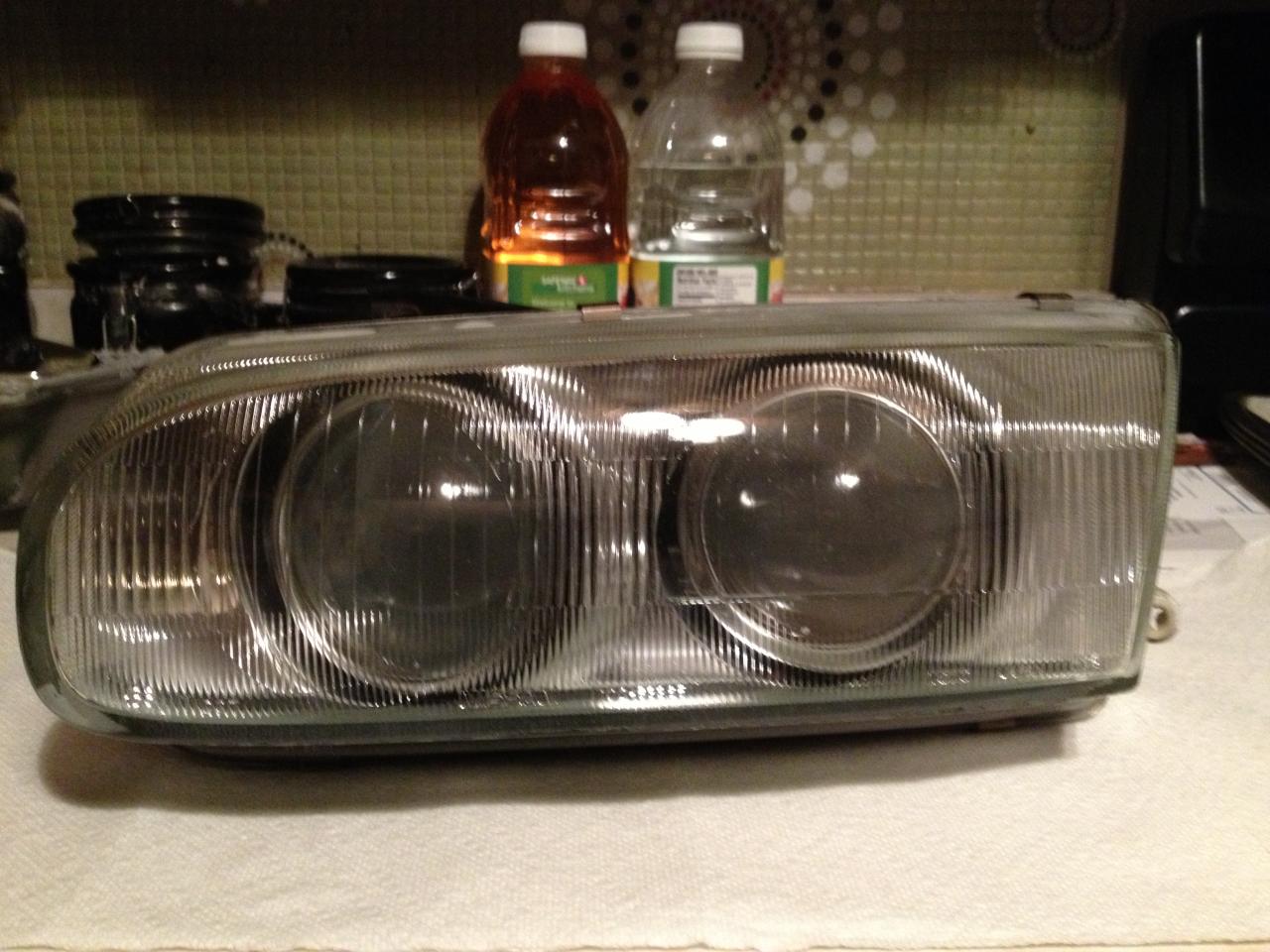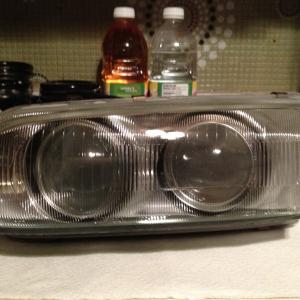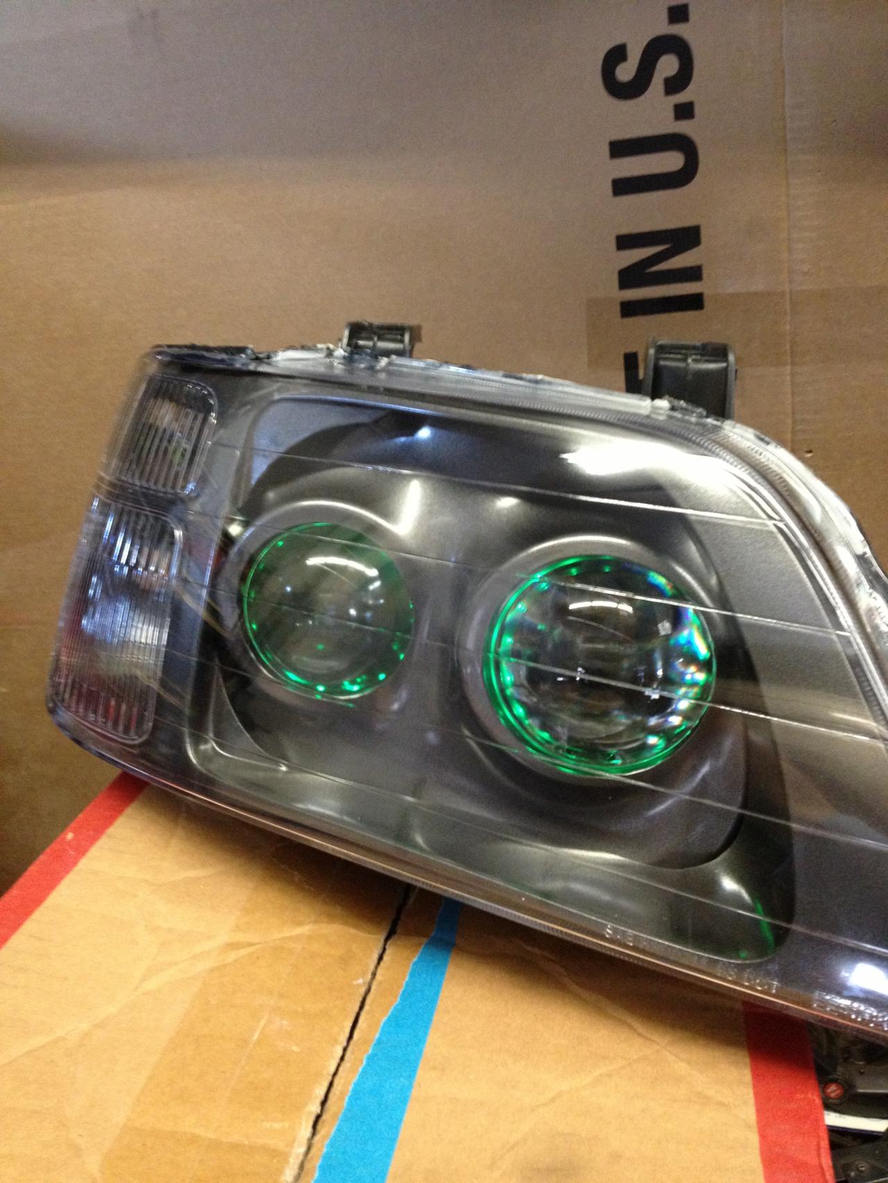 I was able to take two completely different headlights and morph them together, to make a bi-halogen headlamp into a double projector headlight assembly. Below is the finished project.