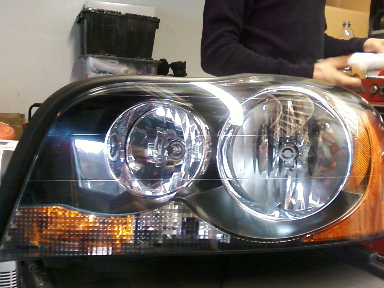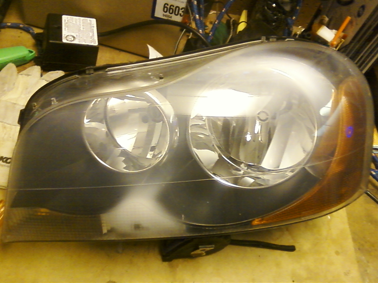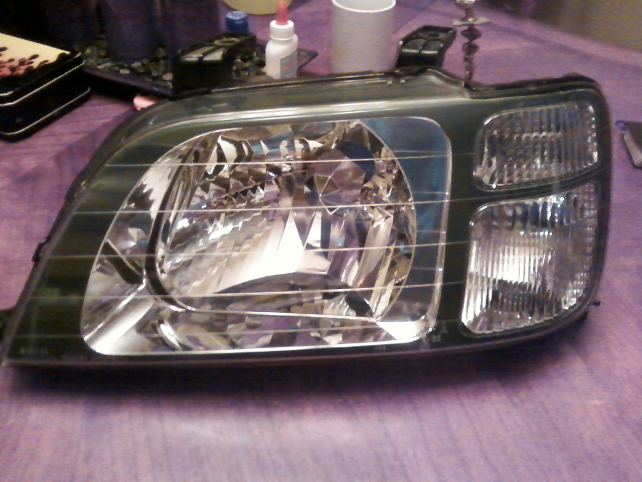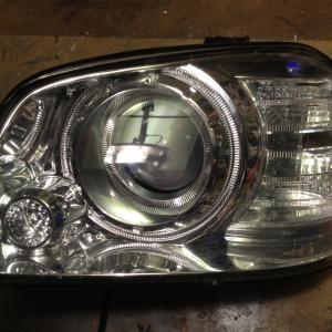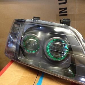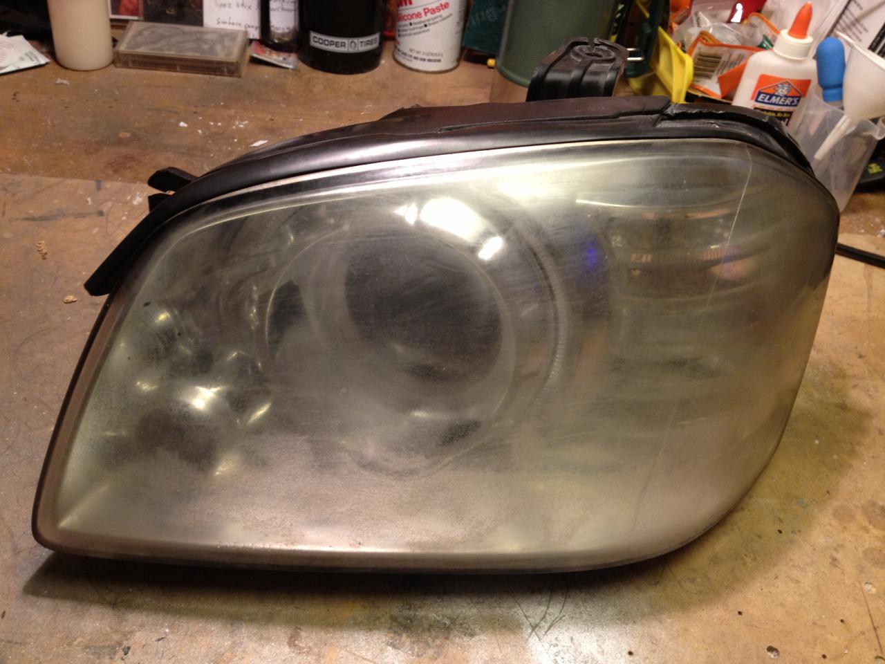 I was able to take two completely different headlights and morph them together, to make a bi-halogen headlamp into a double projector headlight assembly. Below is the finished project.
