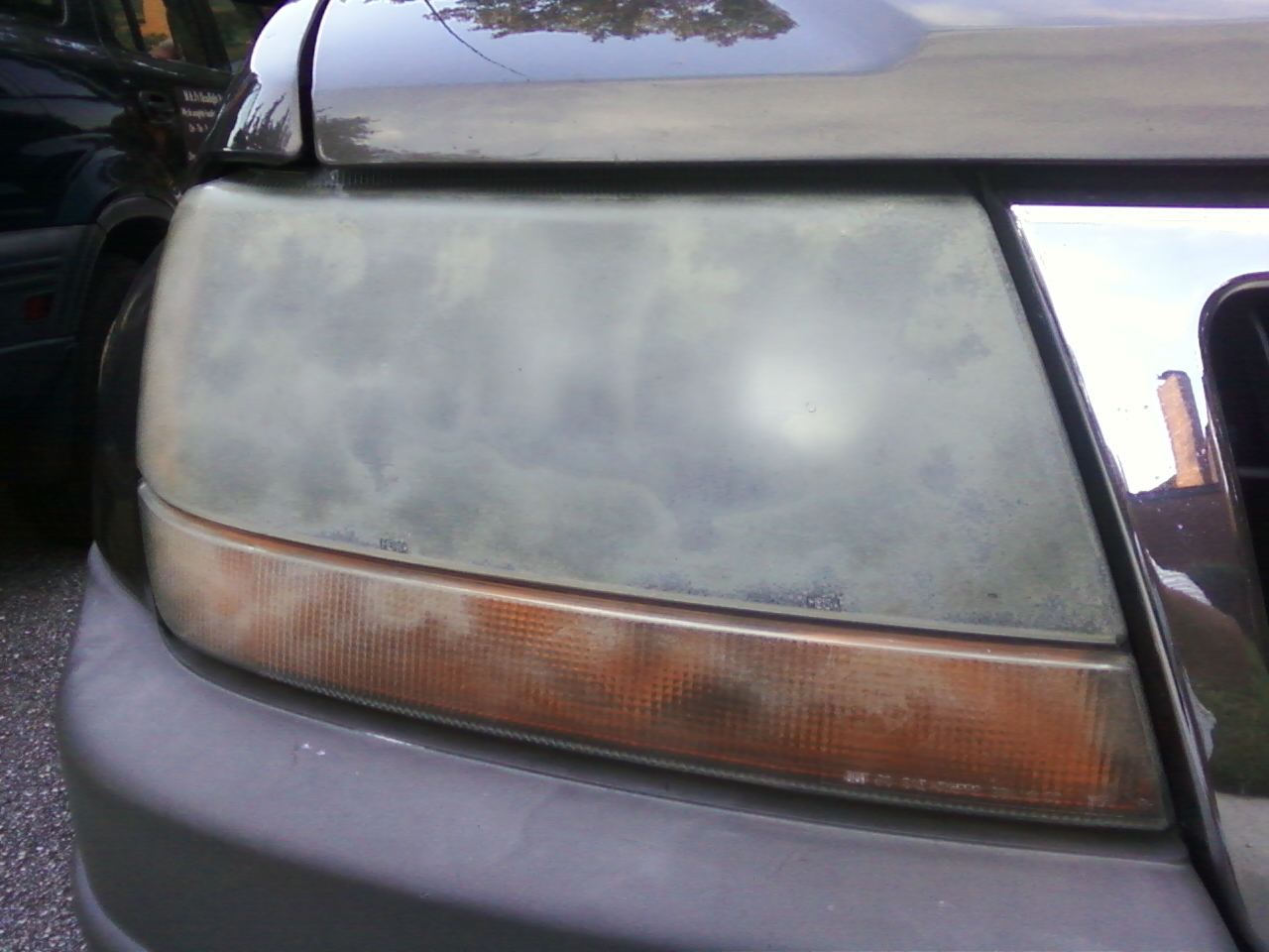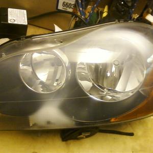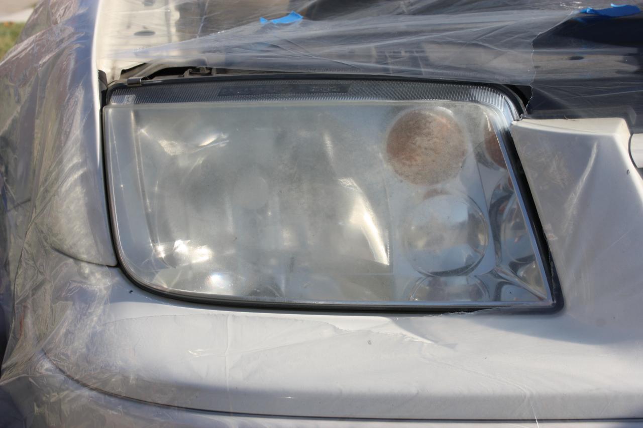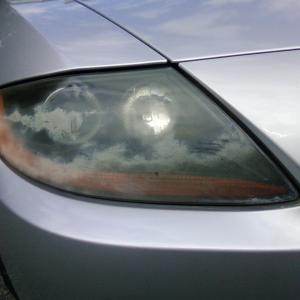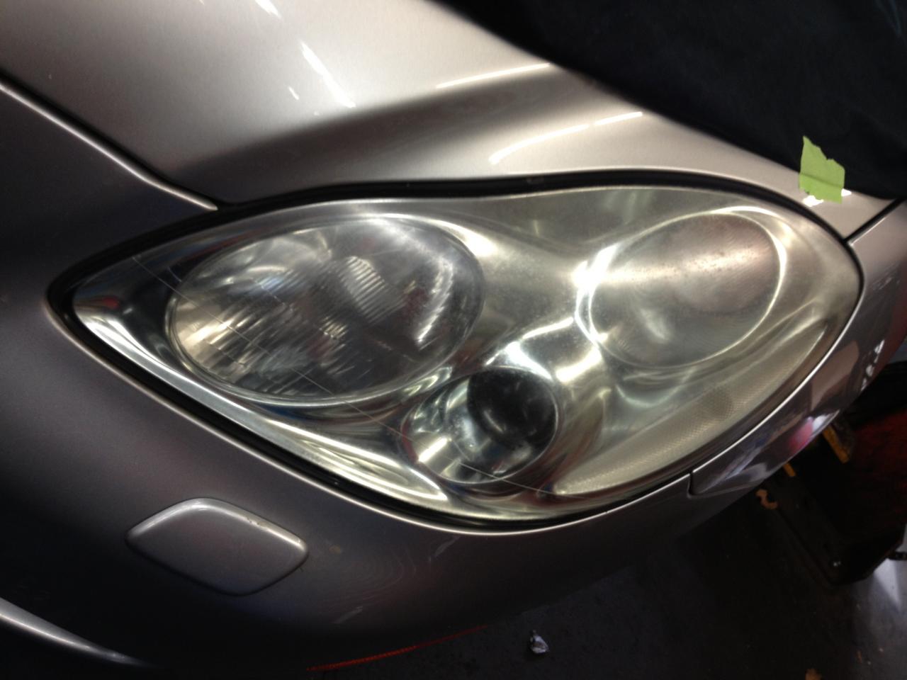 This headlight was brought to me for repair. After external restoration was complete, it was discovered that the headlight was also damaged internally by a blown bulb. The lens was removed from the vehicle, and cleaned inernally and repaired. The difference was amazing. When a bulb explodes, it emits outgasing - which sometimes damages the inside of the lens. In some cases, the inside of the lens may need restoration as well.