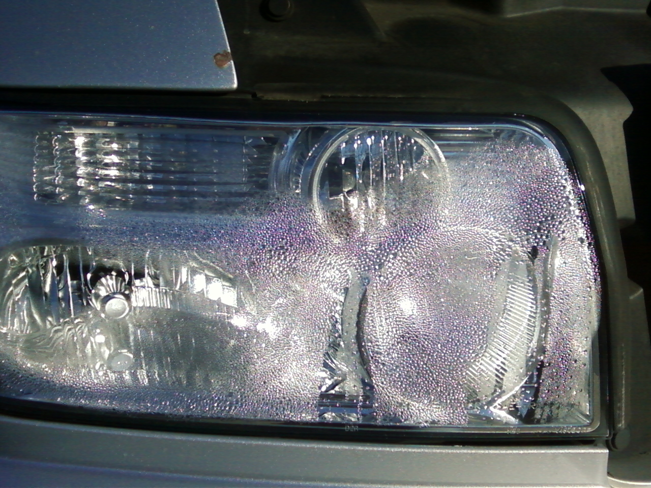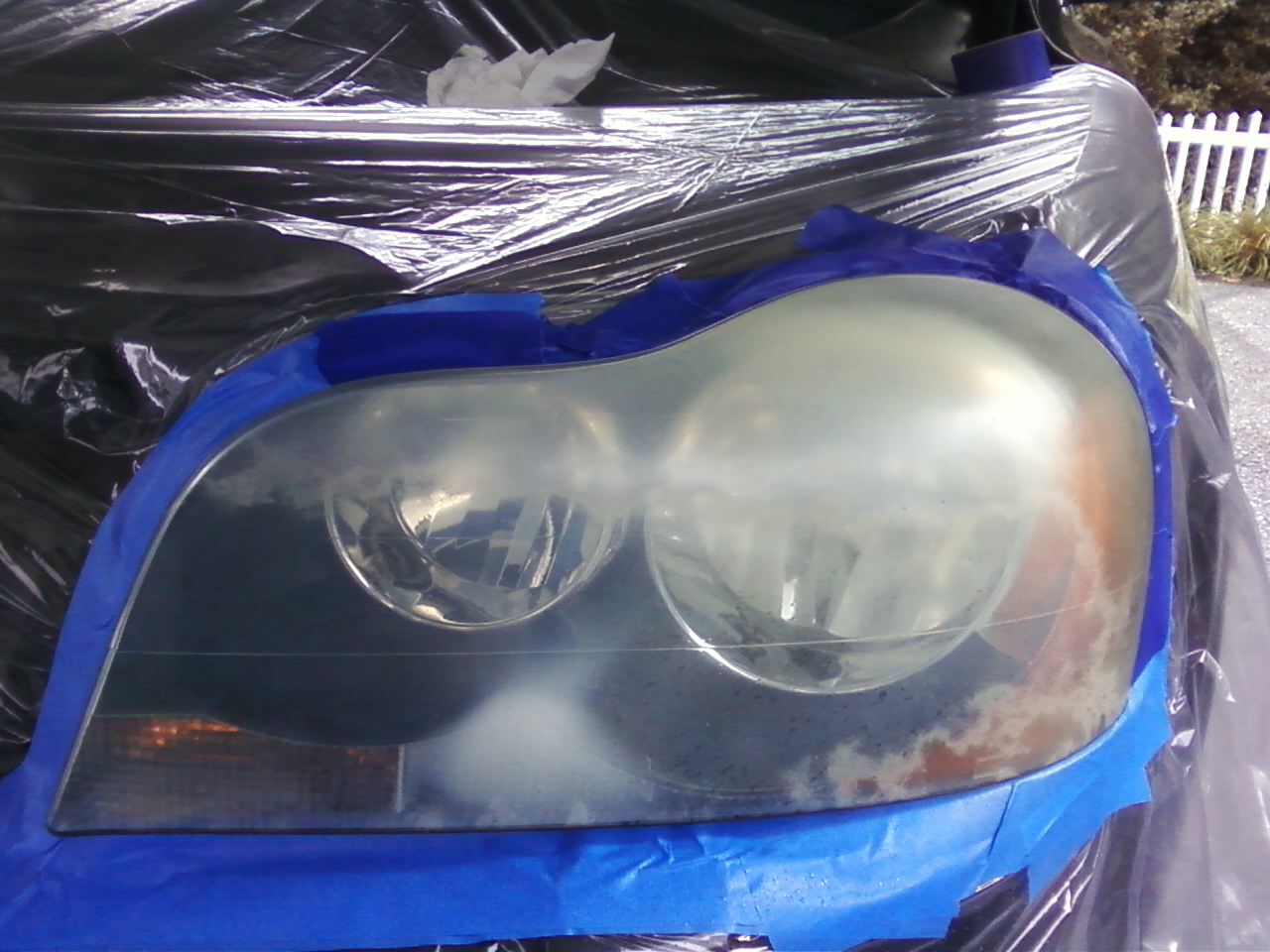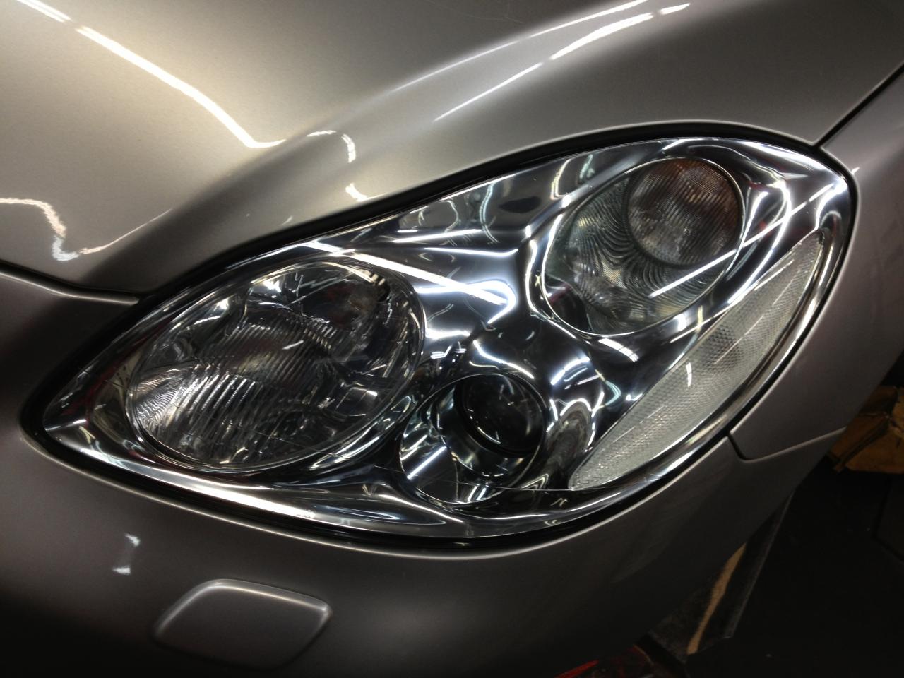This headlight was brought to me for repair. After external restoration was complete, it was discovered that the headlight was also damaged internally by a blown bulb. The lens was removed from the vehicle, and cleaned inernally and repaired. The difference was amazing. When a bulb explodes, it emits outgasing - which sometimes damages the inside of the lens. In some cases, the inside of the lens may need restoration as well.