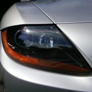 The secondary chrome protion of the internal part of the lens has been painted Electron blue, the stock color of the car and an LED strip was installed. The LED strip wraps half way around the reflector lens then continues up to create a fine eyebrow. Looks Awesome!