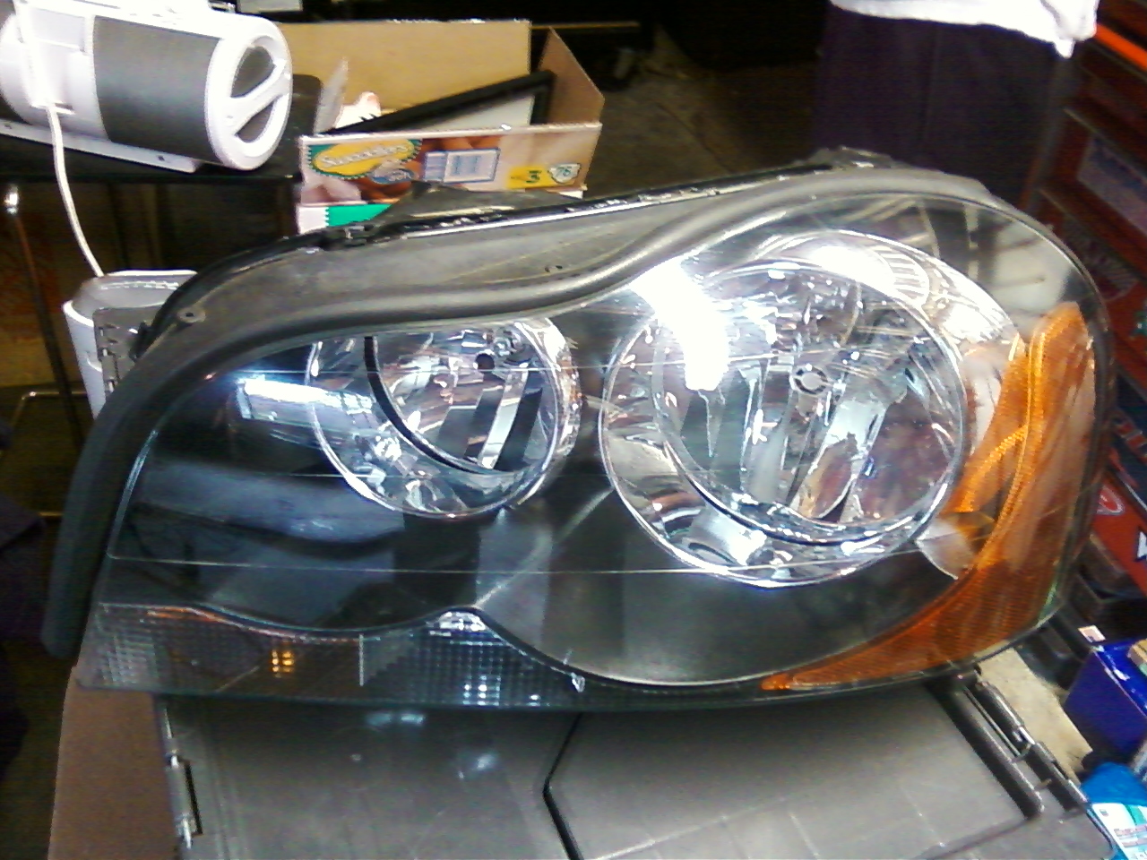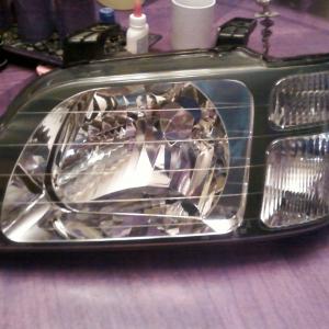 This is the same headlight as the one on the left, after an external restoration and an internal painting and modiphication